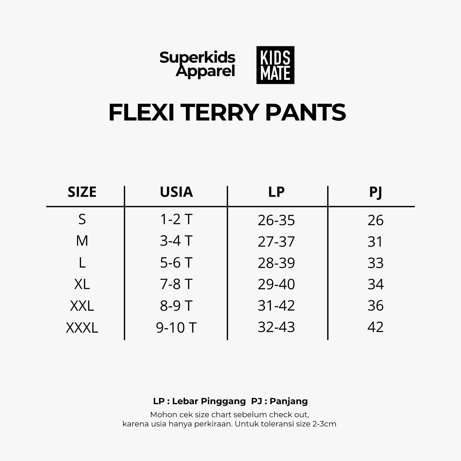 Celana harian favorit si kecil! Terbuat dari bahan babyterry yang lembut, sedikit melar, dan tidak mudah kusut, cocok untuk aktivitas seharian.