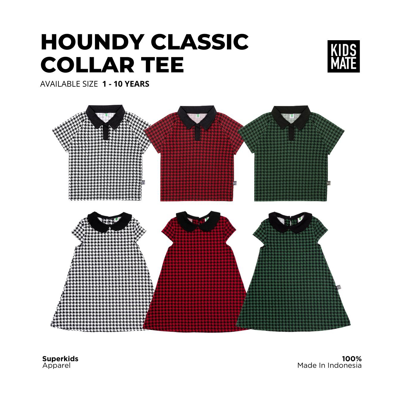 Tampil rapi, stylish, dan tetap super nyaman! Koleksi terbaru dari Kidsmate ini hadir dengan motif houndstooth klasik, dipadukan dengan kerah rapi yang memberi kesan clean & fashionable untuk anak aktif.