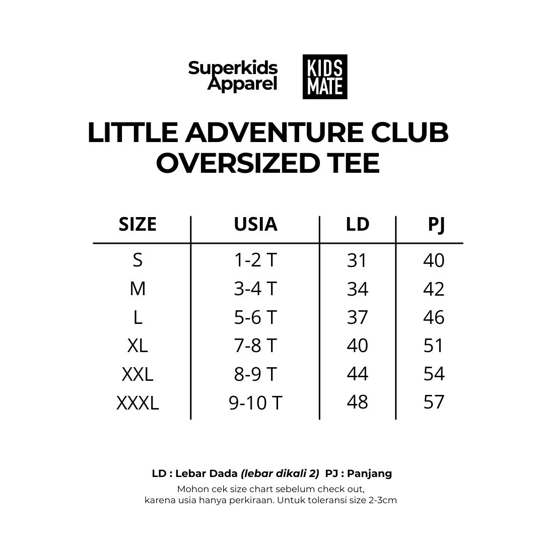 T-shirt anak dengan desain oversized modern yang siap menemani setiap petualangan si kecil. Nyaman dipakai untuk bermain, jalan-jalan, hingga aktivitas sehari-hari.