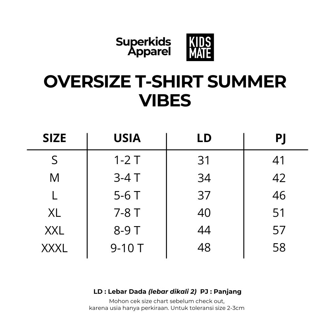 Kaos anak dengan model oversize yang nyaman dan kekinian, cocok untuk menemani aktivitas si kecil sepanjang hari. Potongannya longgar bikin anak bebas bergerak, tetap adem, dan tidak mudah gerah.